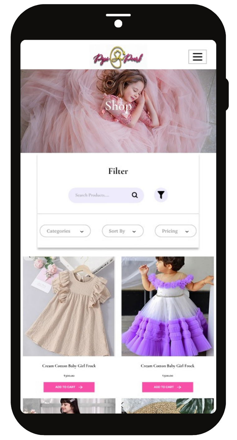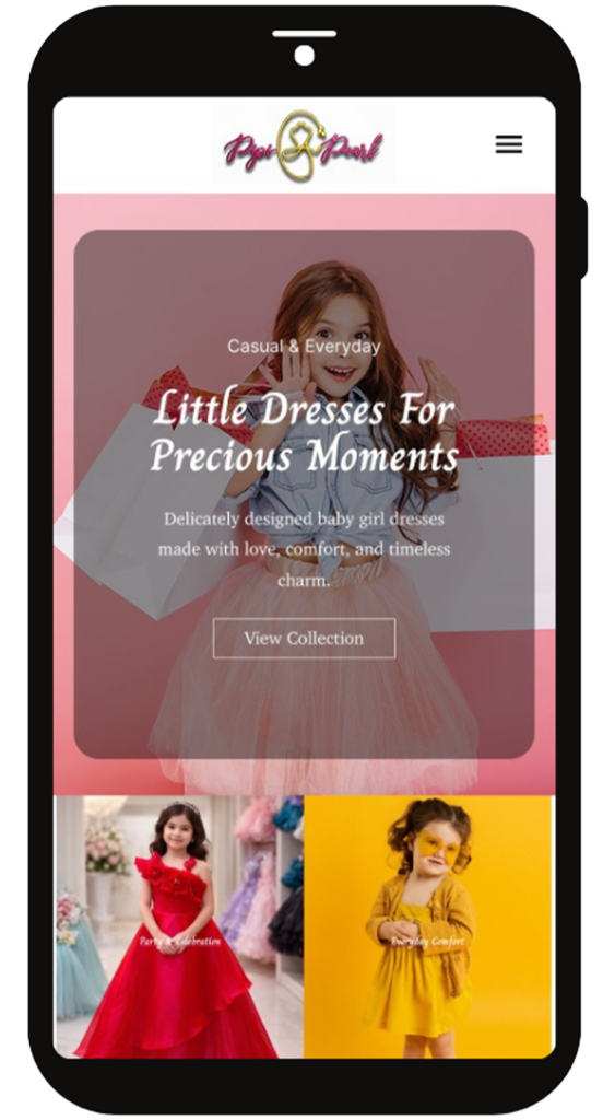 Pipi & Pearl is a clothing brand focused on stylish, comfortable, and thoughtfully designed outfits for baby girls. The goal was to design and launch a clean, trustworthy e-commerce website that reflects the brand’s soft, playful identity while making shopping easy for parents.